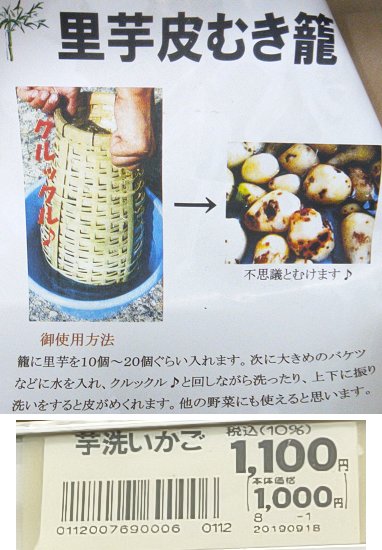 里芋を籠に入れ、タライで揺する・・・聴いたことがありません・・・したがって売れずにずっと残っています。