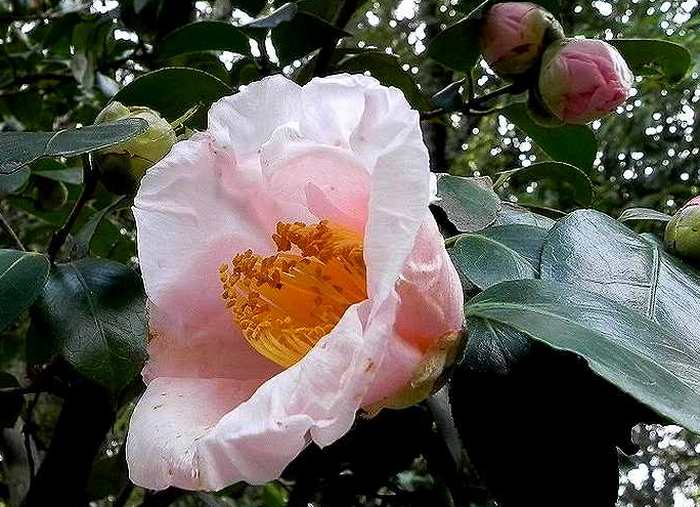こちらはまだつばきはさいていません 今日は雪が降っています 昨日との落差に驚いています |