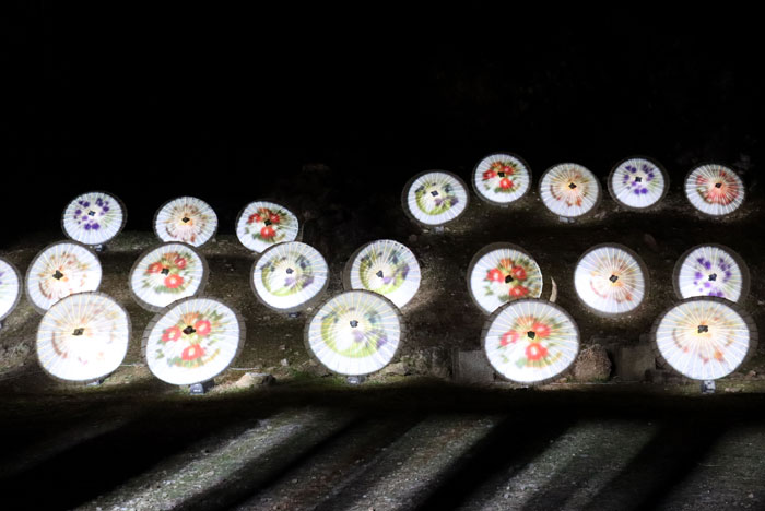 今日も「ぎふ灯り物語」のイベントから和傘が沢山並べられて光が変化するプロジェクションマッピングが見れました。 岐阜の鵜飼の鵜の映像も見れました。 雪が降りそうな寒い日に行きましたので撮るのは大変でしたが空いていたのはよかったです。 |