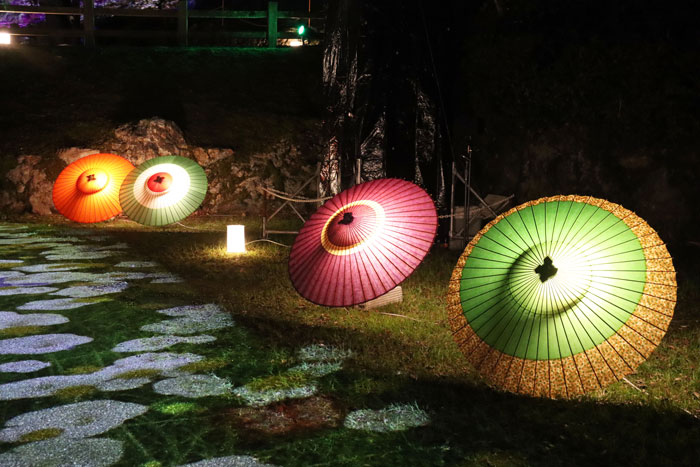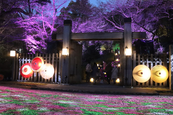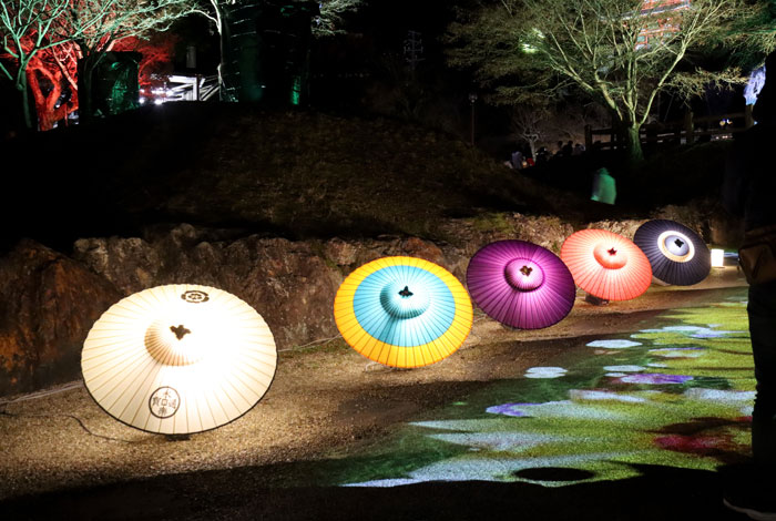 20日の日に岐阜公園で今年も行われた「ぎふ灯り物語」という和傘と提灯のイベントを見に行って来ました。 信長の居住地の跡に和傘が並べられて幻想的で綺麗でした。 今日はその中から冠木門と和傘のお届けです。 |