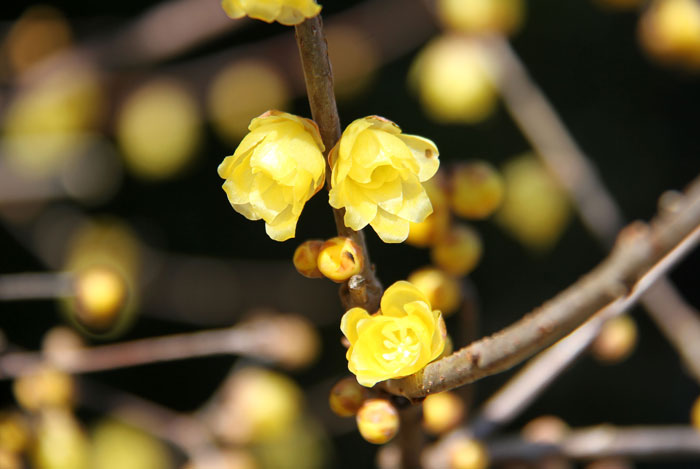 今、花と言えば水仙,蝋梅しか見当たりません。 2週間の長期予報を見ても 最高気温が一桁 梅も当分咲かないように思います。