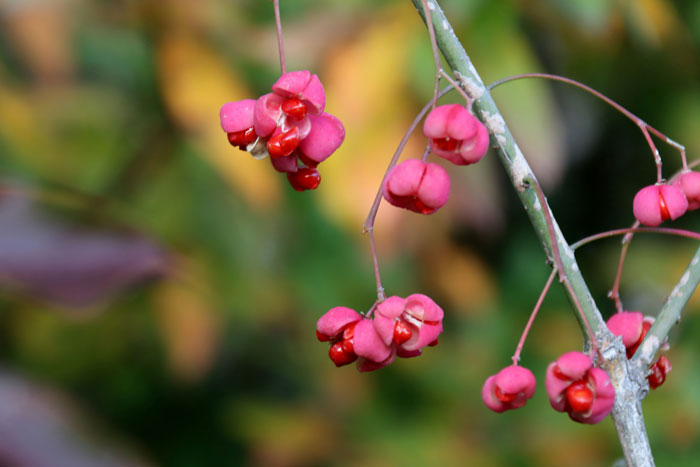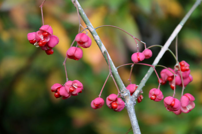 今日は近所で撮ったマユミのお届けです。 可愛い実がなりますね。好きなお花です。 |