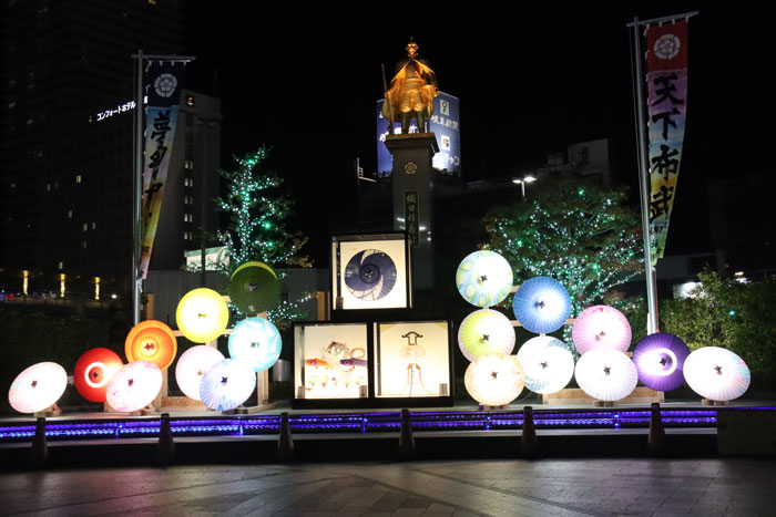 今日は岐阜駅前の広場に飾られていたイルミネーションのお届けです。 岐阜特産の和傘や提灯、うちわが飾られていました。 真ん中は信長像です。 昨年と同じなのはつまらなかったですが地方の都市はこんなものですね。 |